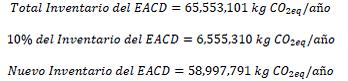 PASO 8: Para el caso en el que el indicador supere el límite se realiza el cálculo del 10% del total del inventario de GEI y sobre este se vuelve a calcular el indicador de cociente del EACD.