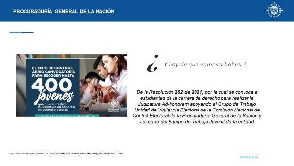 ¿Sabia Usted Que la PGN convocó a estudiantes de la carrera de derecho para realizar la Judicatura Ad-honórem en la entidad?